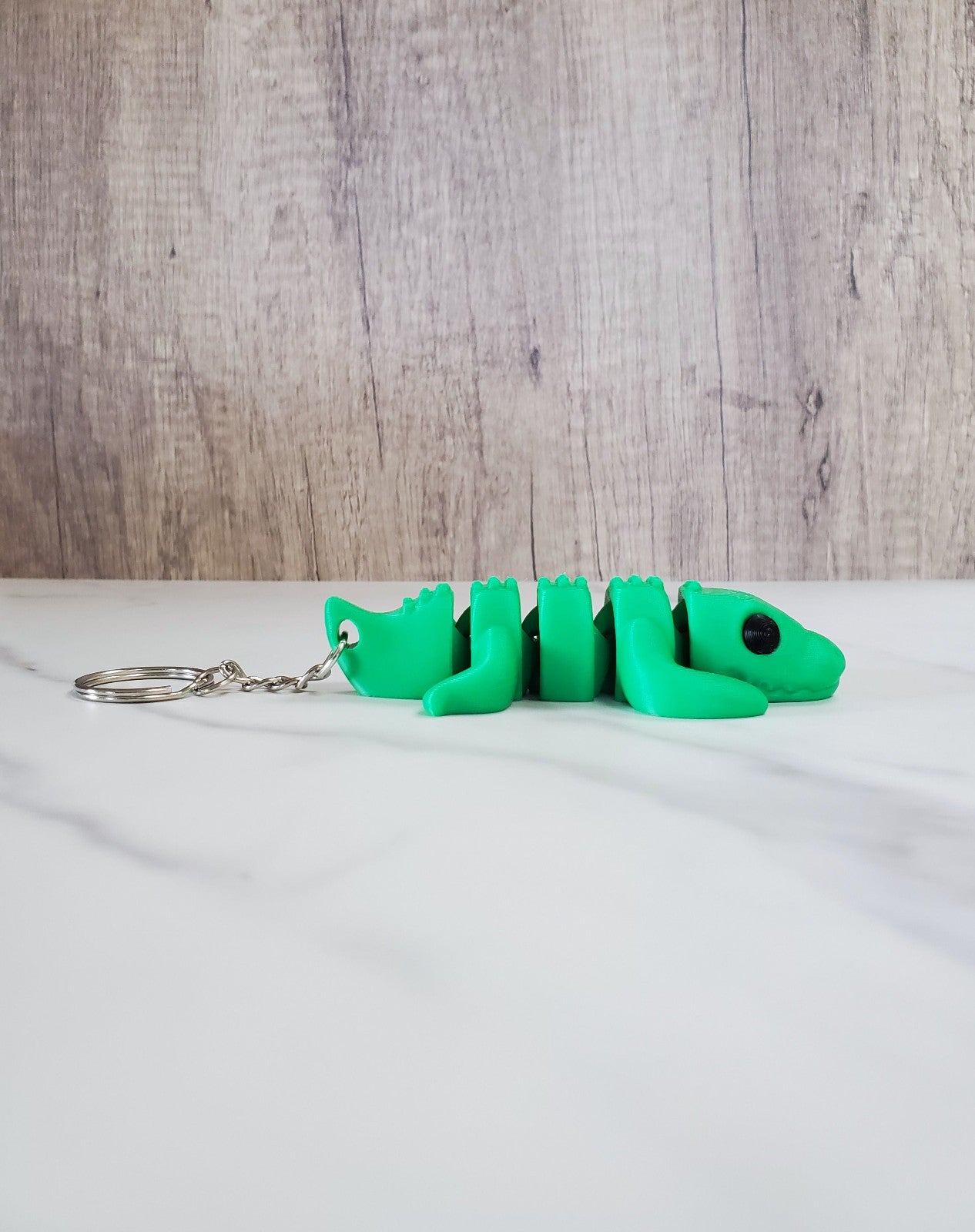 Crocodiles are printed in-house using a 3D printer and PLA filament, a non-toxic, eco-friendly bioplastic derived from renewable sources such as corn and sugarcane. There may be some slight imperfections and visible layer lines due to the nature of 3D printing.