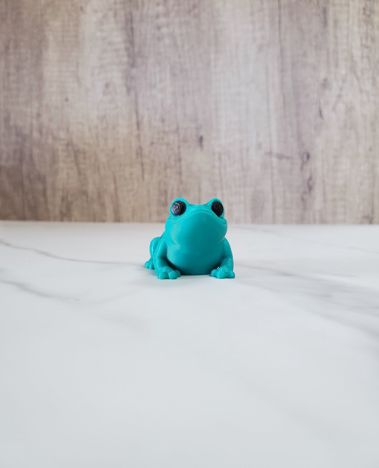 Frogs are printed in-house using a 3D printer and PLA filament, a non-toxic, eco-friendly bioplastic derived from renewable sources such as corn and sugarcane. There may be some slight imperfections and visible layer lines due to the nature of 3D printing.