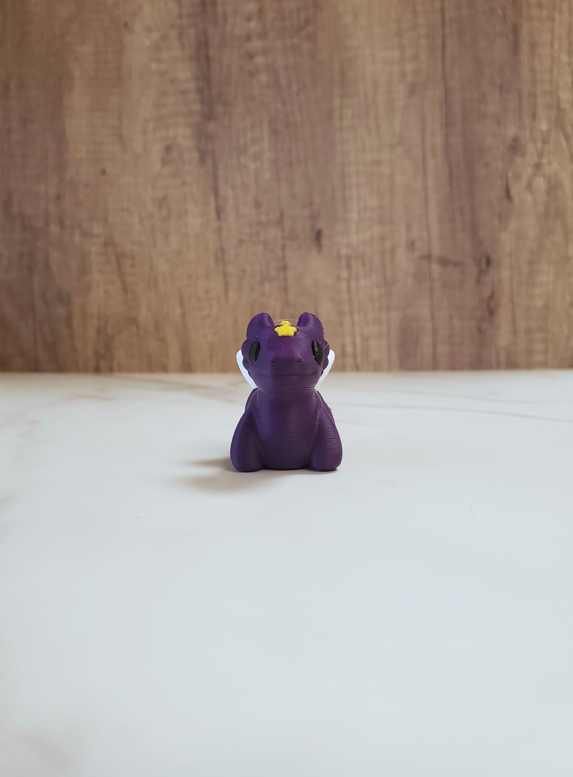 Dragons are printed in-house using a 3D printer and PLA filament, a non-toxic, eco-friendly bioplastic derived from renewable sources such as corn and sugarcane. There may be some slight imperfections and visible layer lines due to the nature of 3D printing.